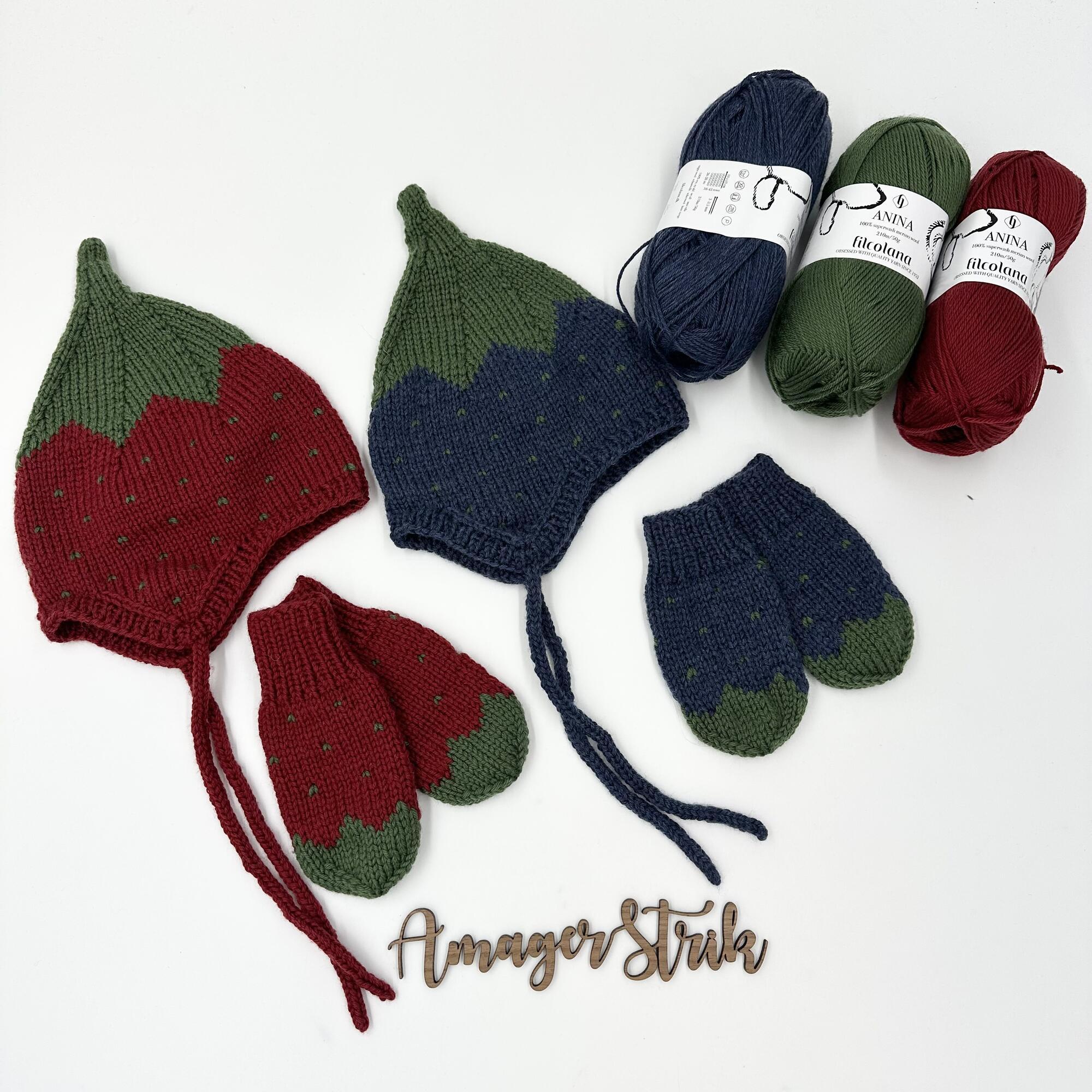 Opskrift til Jordbær/blåbær hue-sæt i Anina