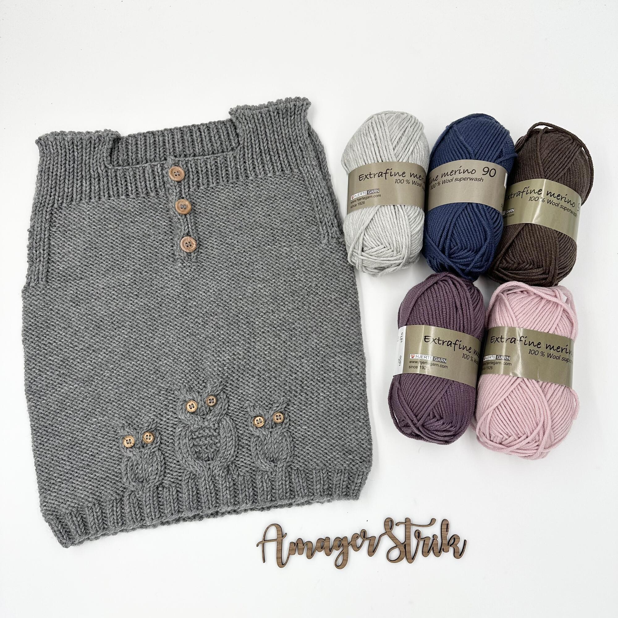 Opskrift til Vest med Ugler junior i Extrafine merino 90