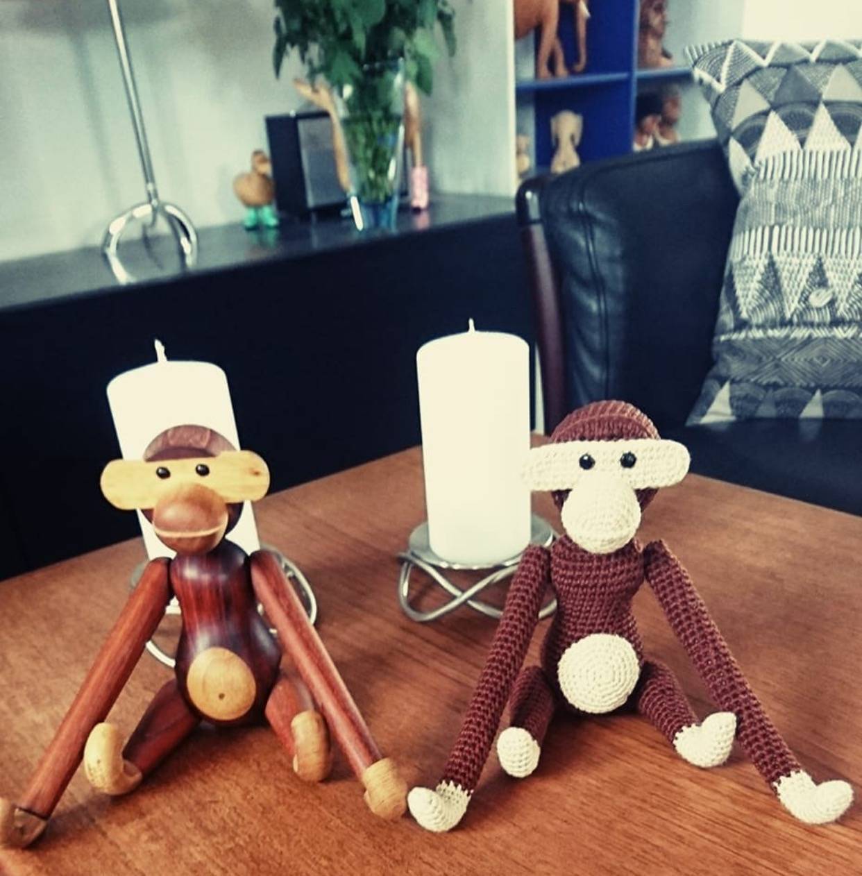Der findes mange forskellige hækleopskrifter på den berømte abe, og senest har Annette Heintze videreudviklet på Kreaposens opskrift. Se Kreaposens originale opskrift her