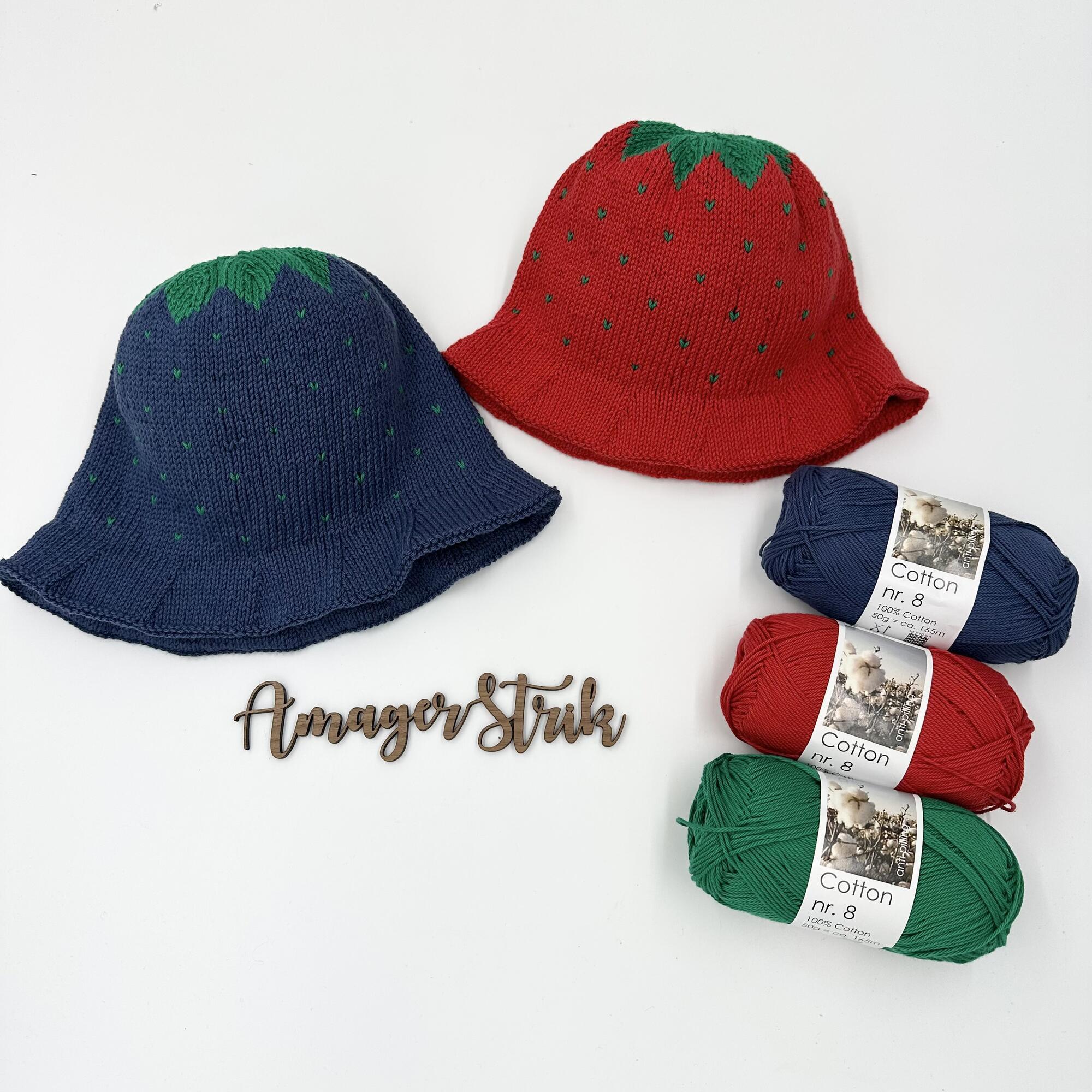 Opskrift til Jordbær/Blåbær bøllehat til voksne i Cotton nr. 8
