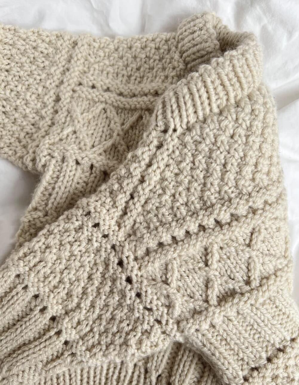 Opskrift til Ingrid Sweater Baby fra PetiteKnit i str 1-12 mdr.