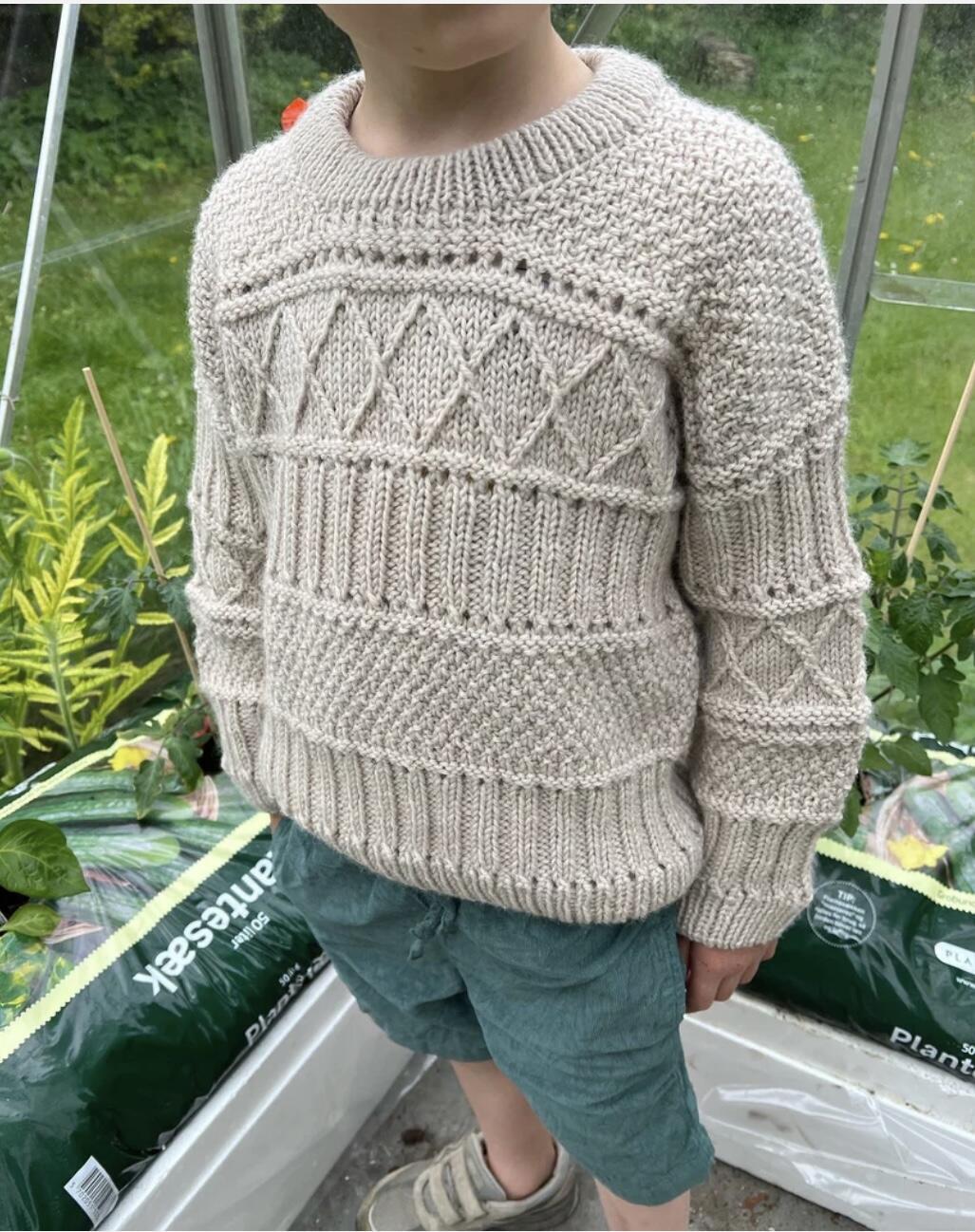 Opskrift til Ingrid Sweater Junior fra PetiteKnit i str. 1-14 år.