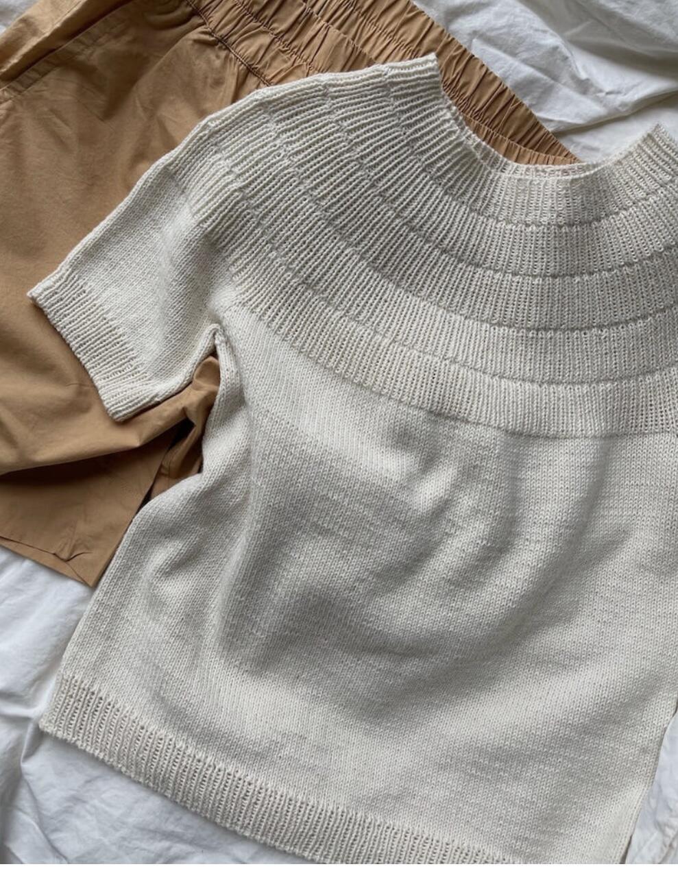 Den hvide Anker Tee er strikket i Elise fra Permin i farven Off white [6606].