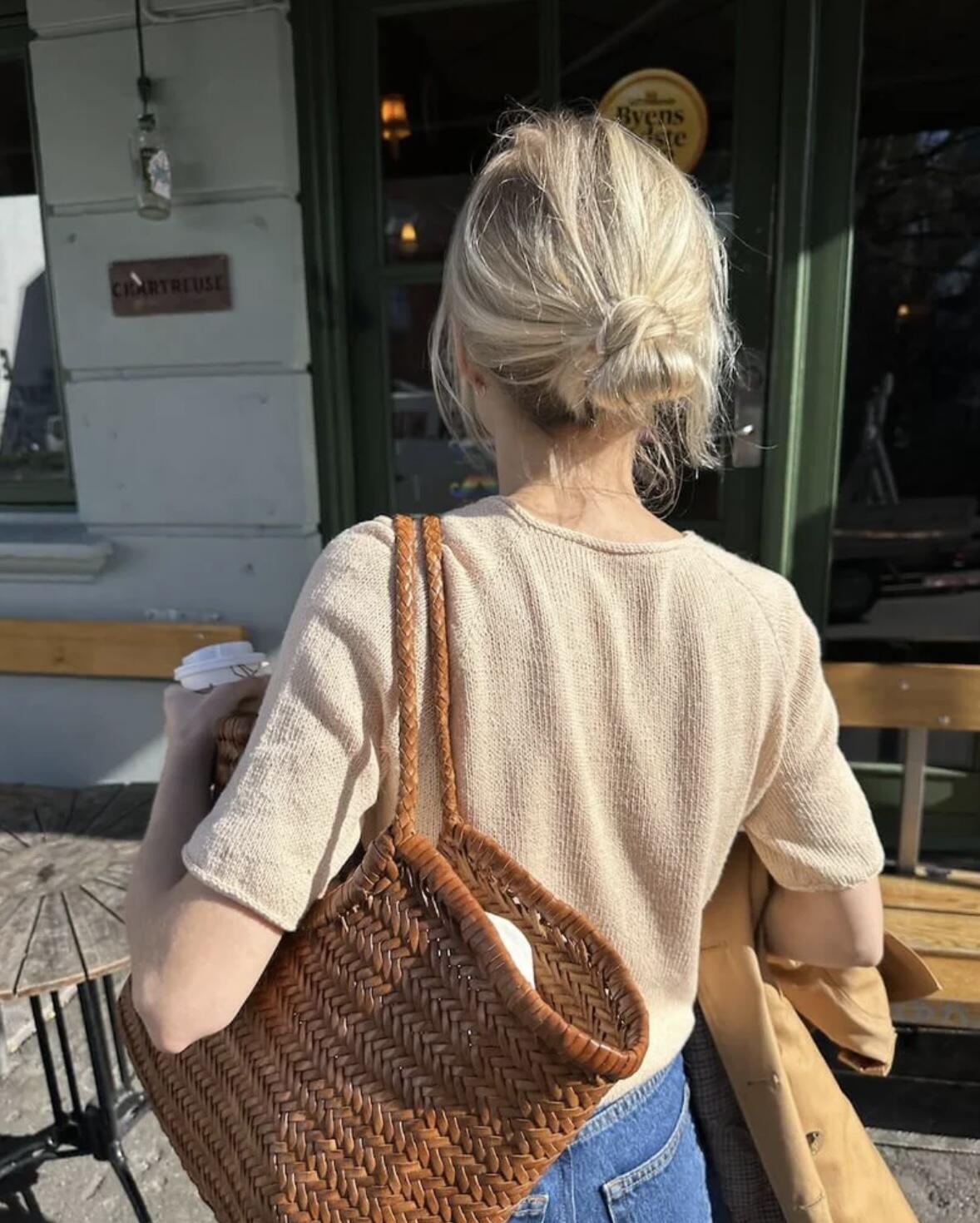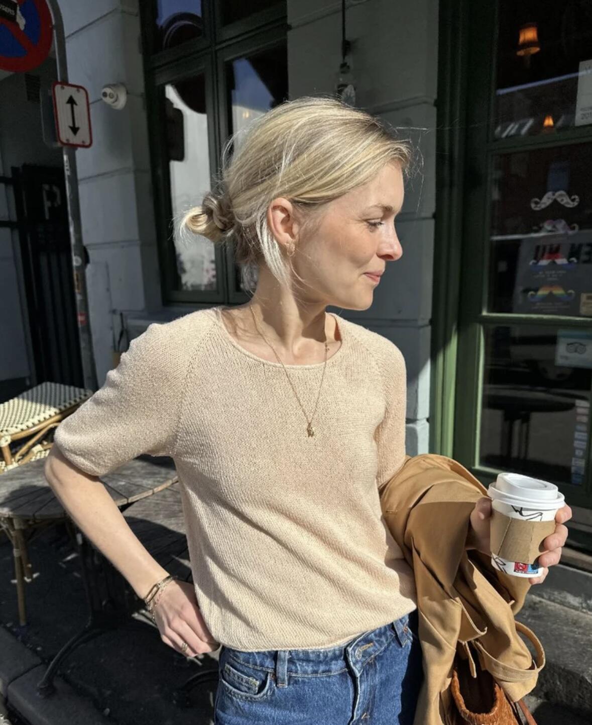 Den ferskenfarvede Kumulus Tee O-neck er strikket i Pure Silk fra Knitting for Olive i farven Blid fersken.