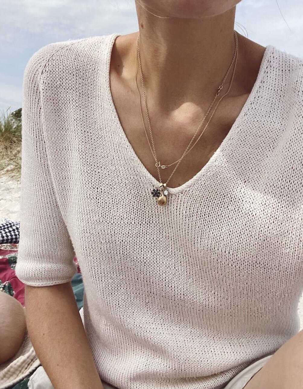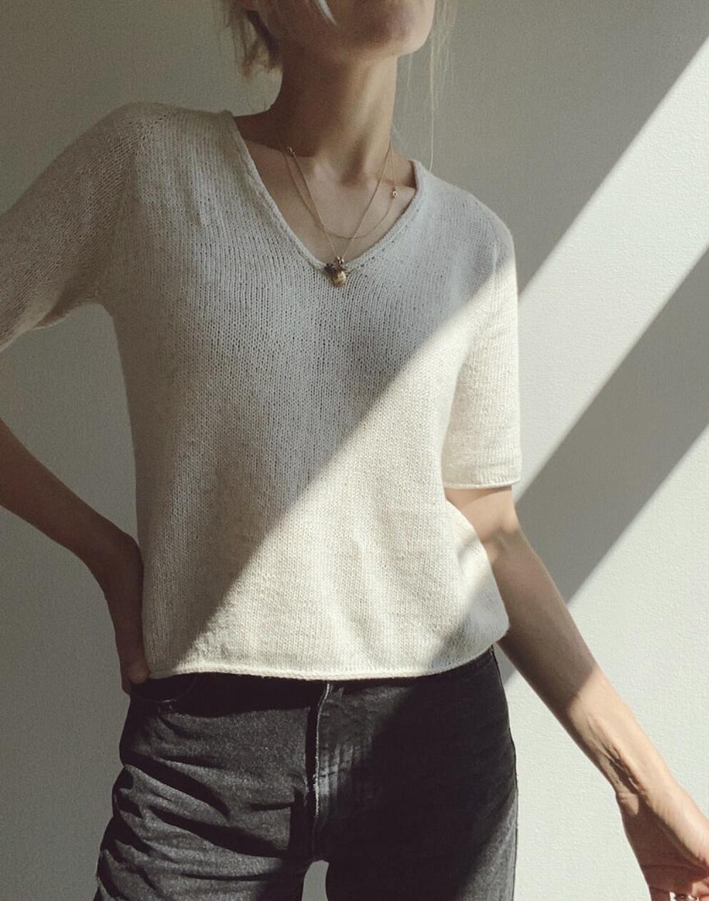 Den hvide Kumulus Tee er strikket i Pure Silk fra Knitting for Olive i farven Fløde.
