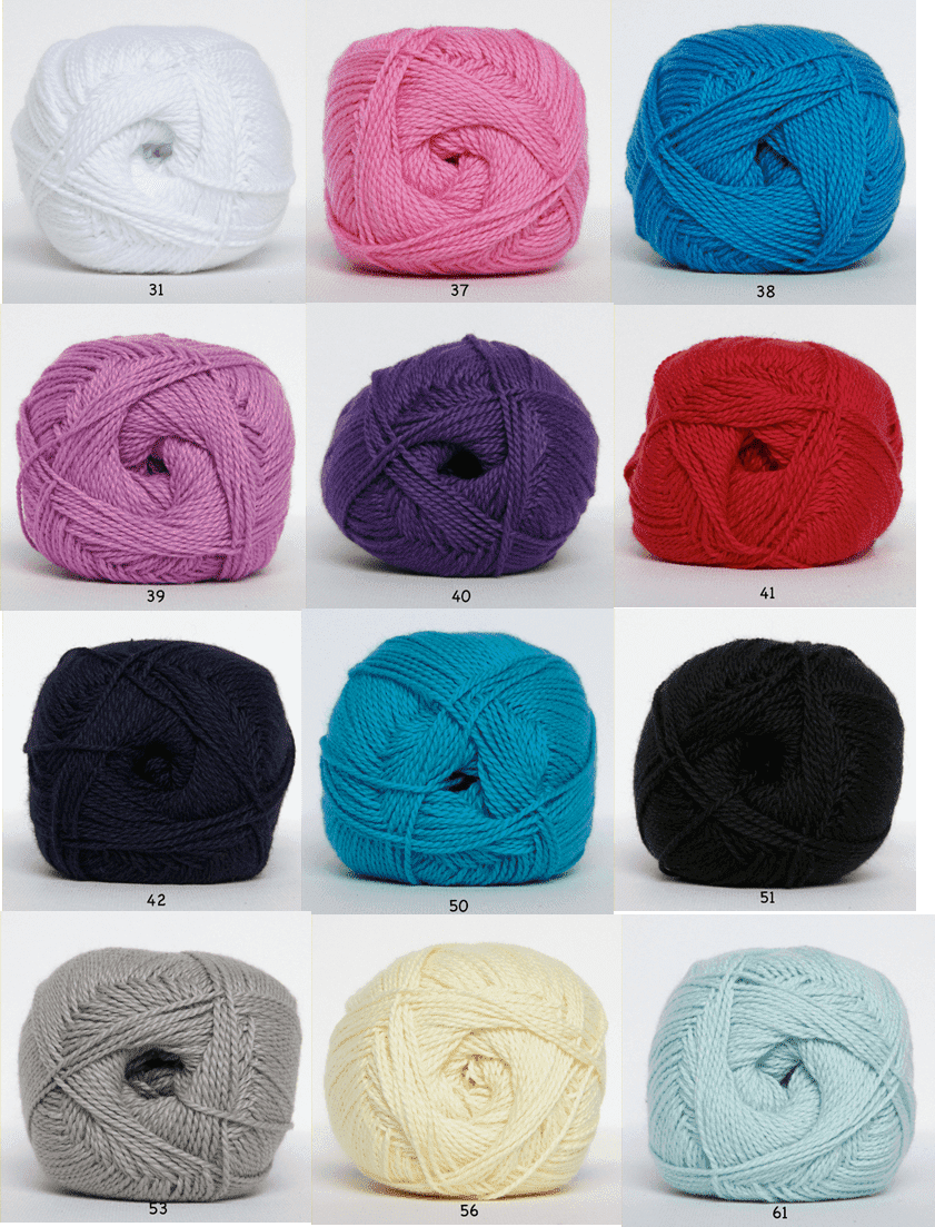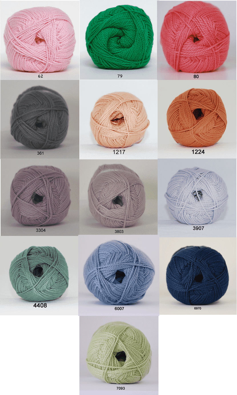 Garnforbrug: 1 – 1 – 2 – 2 – 2 – 2 – 3 ngl Blød Bomuld 4/2