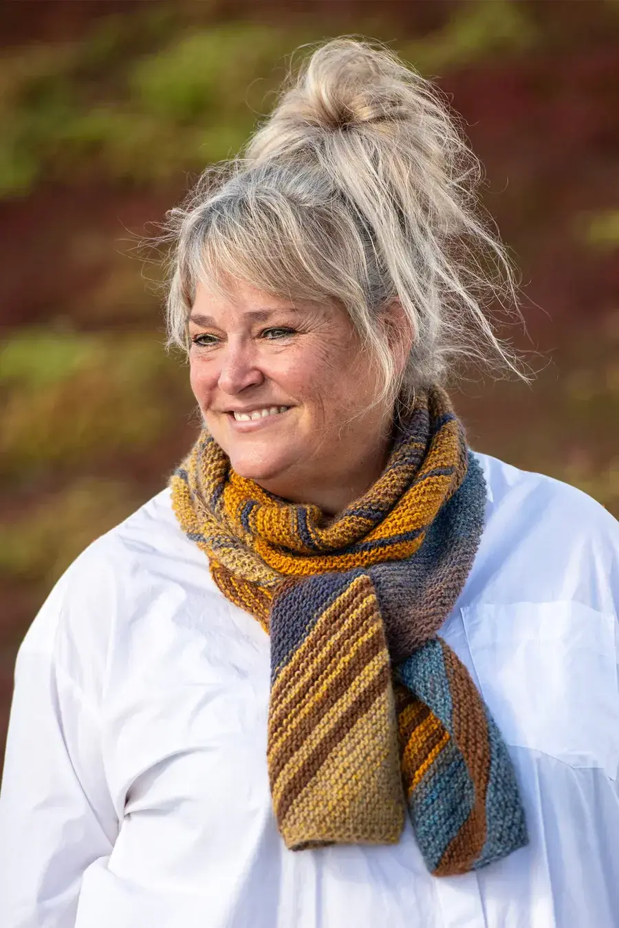 Det stribede mønster opstår naturligt, da tørklædet strikkes i Mayflower Taormina, som er spundet med flere farver i én lang mønsterrapport. Resultatet taler for sig selv. Tørklædet har en blød og lækker struktur, som ikke kun gør tørklædet enormt blødt men også smukt at se på.