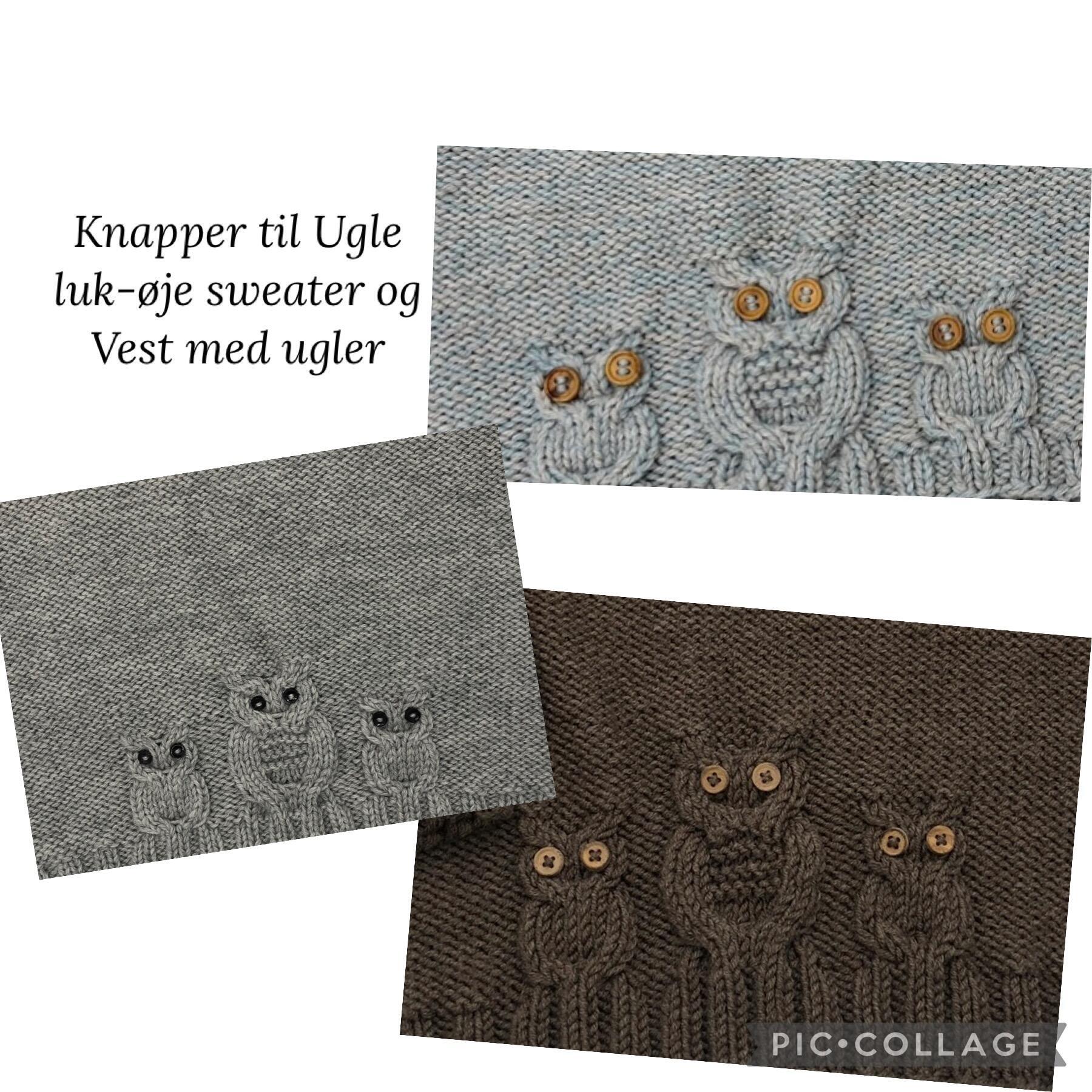 Træknapper 10 mm til Ugle Luk-øje sweater junior og Vest med ugler