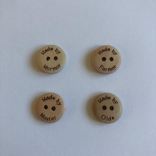 Træknapper med Made by i str. 15 mm